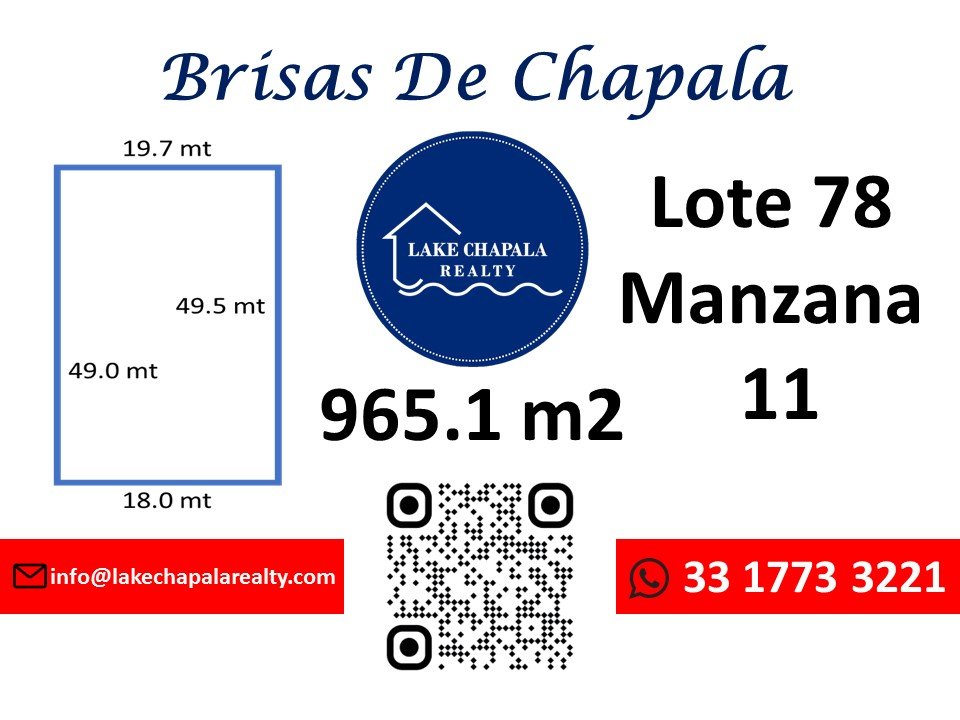 Nestled within the secure, tree-lined gated community of Brisas de Chapala, this premium 965 m2 lot offers a stunning panoramic lake view lot with breathtaking, unobstructed views of Lake Chapala. With its perfect slope, it is the ideal spot to create your dream home.